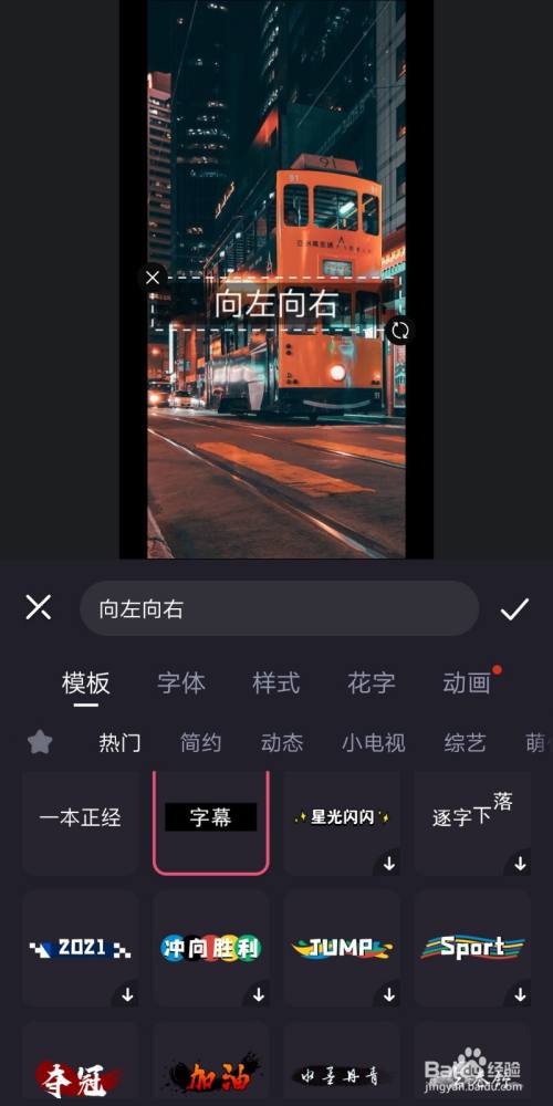添加字幕后,向右滑动底栏找到“动画”,点击选择合适的字幕动画。