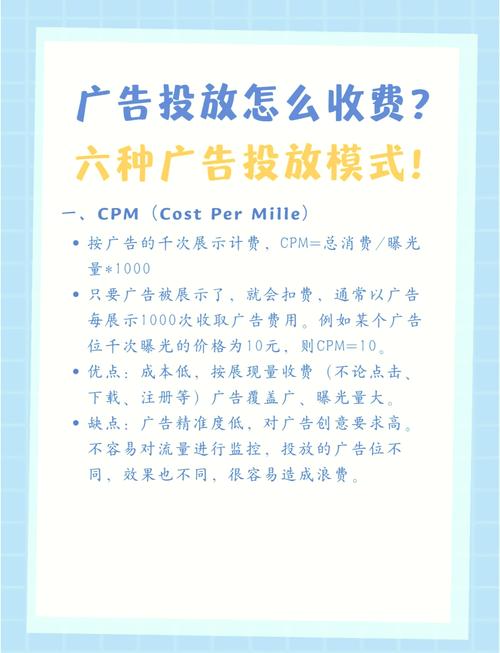 1、CPM:计费单位按每千次展示,即广告主展示广告1000次时,系统将收取费用。